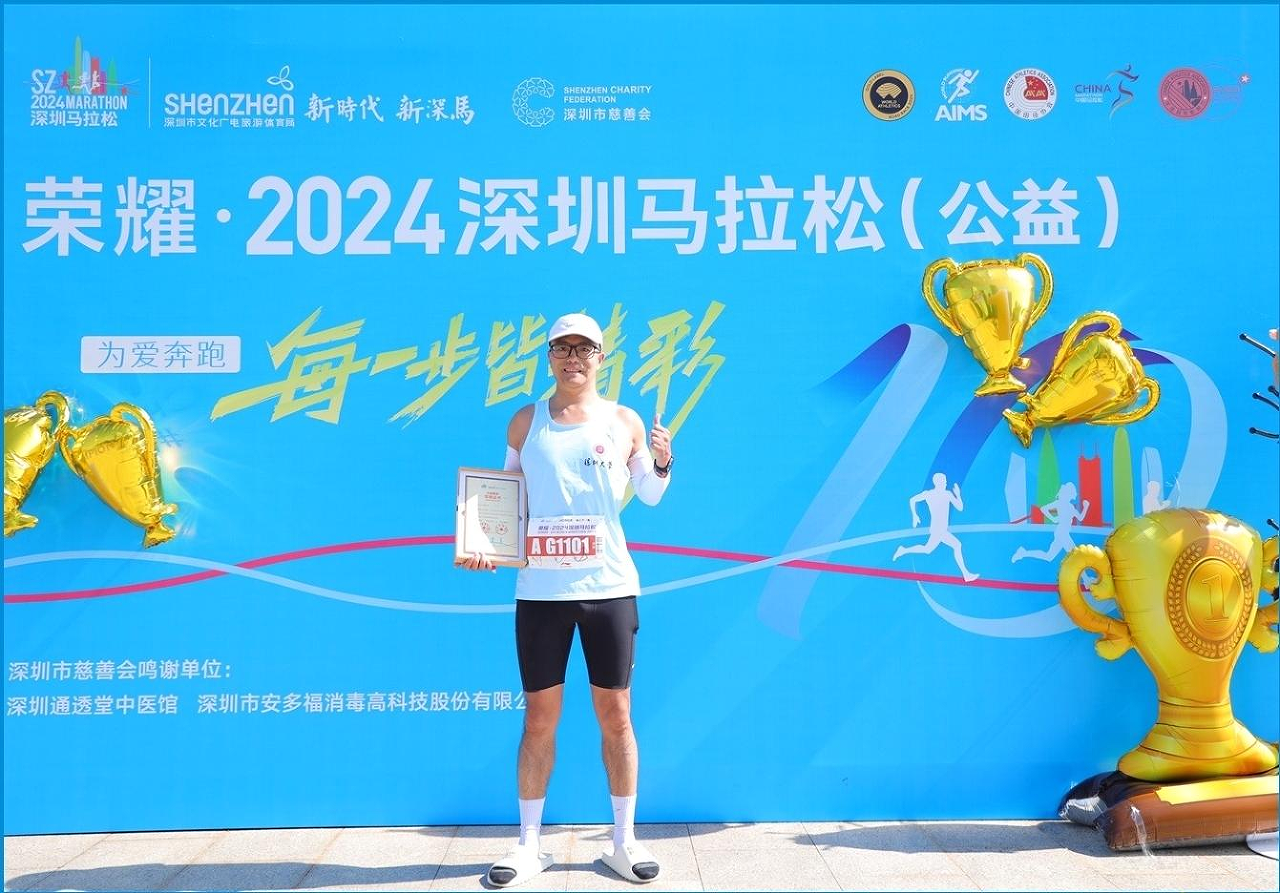 據介紹,為進一步促進深圳文體慈善事業發展,深圳市慈善會聯動深圳馬拉松組委會在2024年深圳馬拉松賽事中向社會公眾首次開放公益名額,以“運動+慈善”模式,充分發揮各自平臺優勢,匯聚運動慈善資源。成功報名的公益跑者不僅可以獲得公益跑者榮譽證書,還有市慈善會為公益跑者提供的,由深圳通透堂中醫館、深圳市安多福消毒高科技股份有限公司等多家愛心企業捐贈支持的“公益包”,內有徽章、推拿券、驅蚊液、創面消毒液等物資,助力各位公益跑者以更好的狀態完賽。