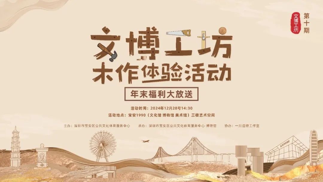 活動簡介:喜歡木作體驗和套色印章的小伙伴們有福啦~12月28號(本周六)將迎來最后一期“文博工坊”大放送,以館藏資源“廣彩洛克菲勒風格人物故事紋茶盒”為靈感,結合以寶安地標建筑為主題的城市套色印章,利用榫卯結構制作出精美的茶盒,讓我們逃離繁忙的日常生活,沉下心,化身“魯班”,開啟充滿魅力的木工之旅。