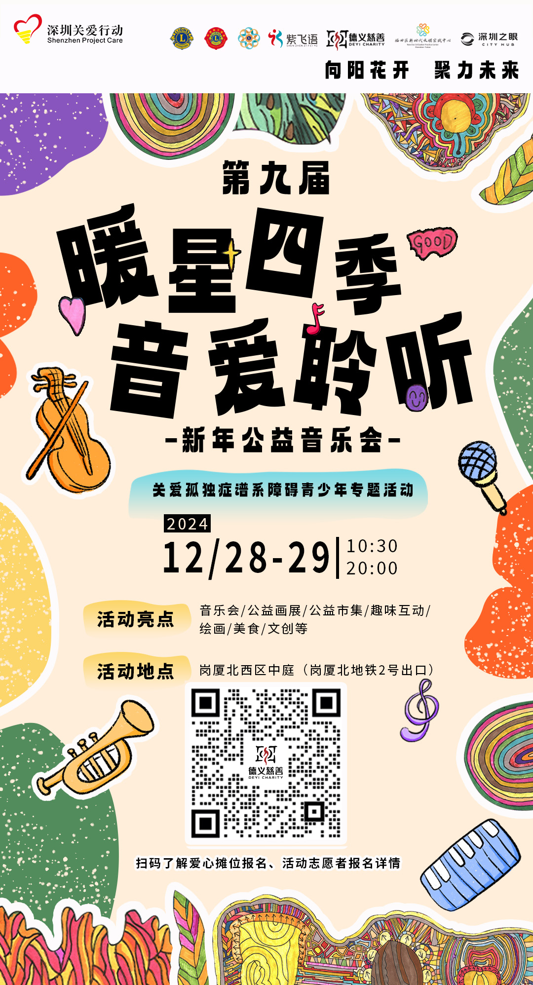 活動簡介:為打破對孤獨癥青少年的刻板印象,傳遞孤獨癥青少年的故事,并引導社會關注支持孤獨癥青少年群體,將于2024年12月28至29日在深圳崗廈北舉行的第九屆“暖星四季·音愛聆聽”新年公益音樂會——關愛孤獨癥譜系障礙青少年專題活動的星星音樂會。