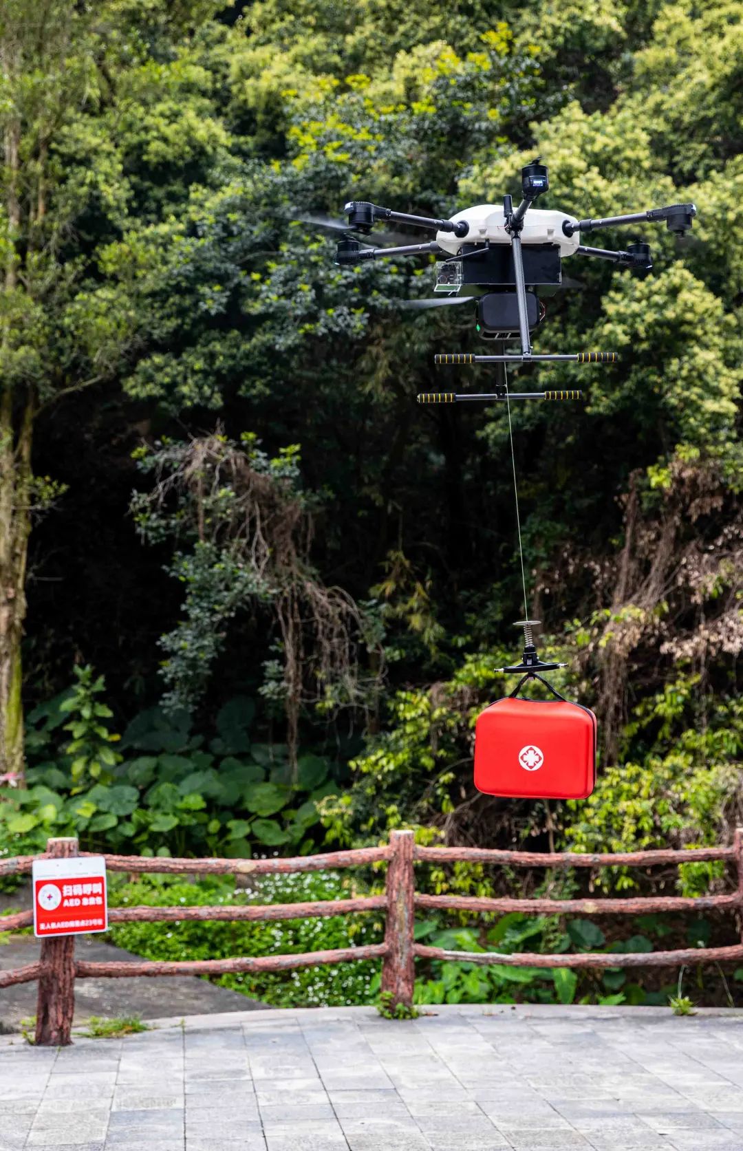 該項目率先在塘朗山郊野公園、鳳凰山森林公園、石巖濕地公園、羅田森林公園和福海河公園設立了5個無人機 AED 配送站試點。每個公園規劃了30個無人機降落點位,構建起了城市智能化空中救護平臺。一旦發生緊急狀況,市民掃描附近急救點的“企鵝急救”二維碼,即可精準定位、一鍵呼叫裝載著AED和急救包的無人機,通過預設最快航線,迅速起飛并精準抵達事發地,為患者爭取寶貴的急救時間,成功打通了急救的立體化空中通道。