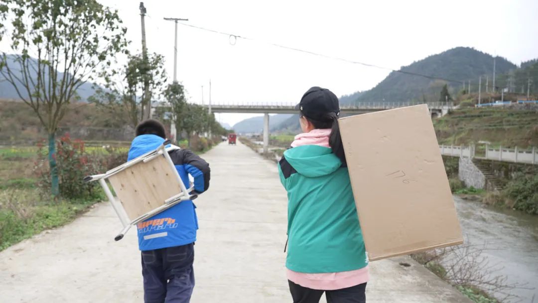 發(fā)放現(xiàn)場,孩子們?nèi)绔@至寶地將書桌扛了起來,清脆的笑聲回蕩在山間。“我有自己的書桌啦!”三年級學(xué)生小偉撫摸著嶄新的小書桌,在小書桌發(fā)放儀式現(xiàn)場興奮地跳起來。
