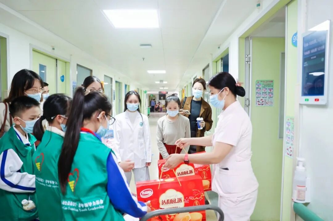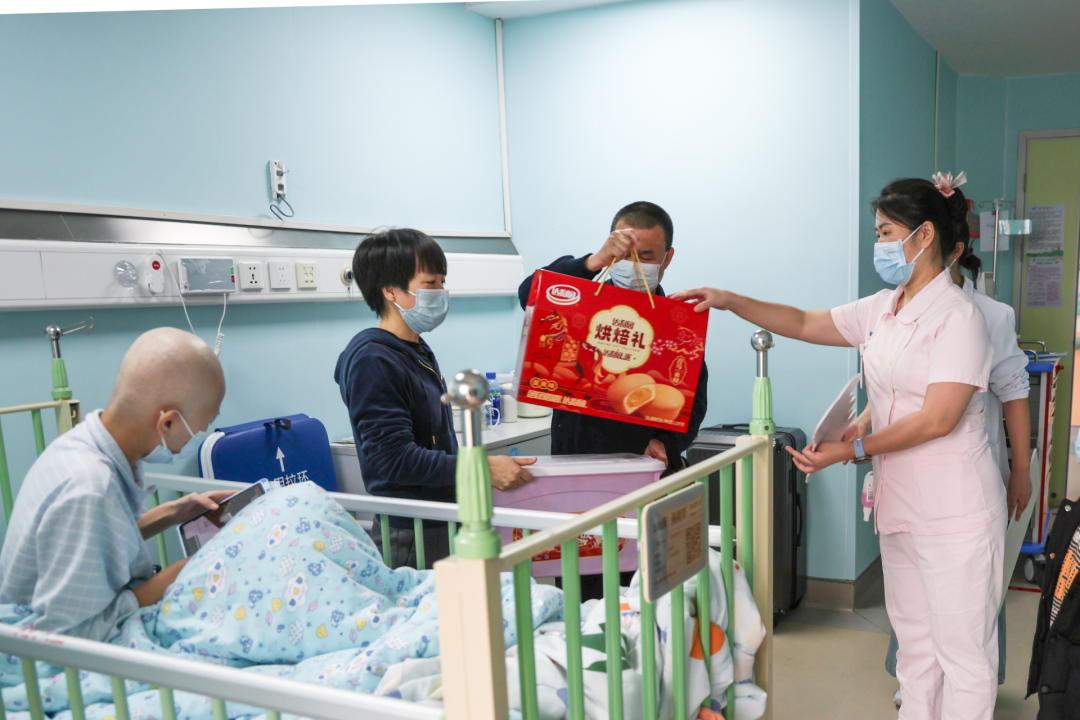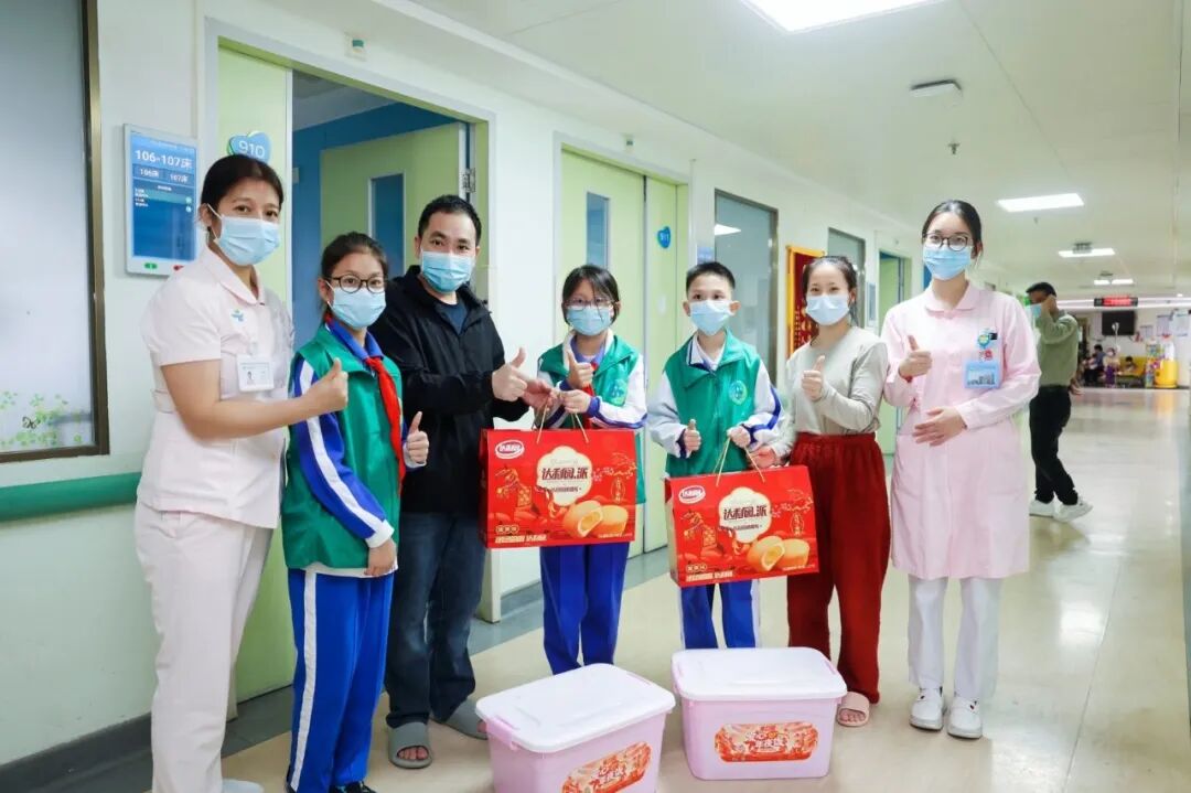 在活動現場,還有3戶愛心家庭專程趕到現場傳遞溫暖,他們與醫護人員相互接力,拿起沉甸甸的年夜飯禮包走向病房;小朋友手捧愛心禮包送到重癥兒童床前,用稚嫩的聲音祝福他們早日康復;患者家長接過年夜飯連聲道謝……