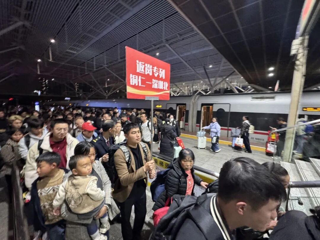 2月24日22時43分,G2137次列車穩穩駛入深圳北站。車廂門打開,來自貴州銅仁的289名工友,帶著家人的囑托和對新年的期待,踏上深圳這片熱土,開啟新的奮斗征程。