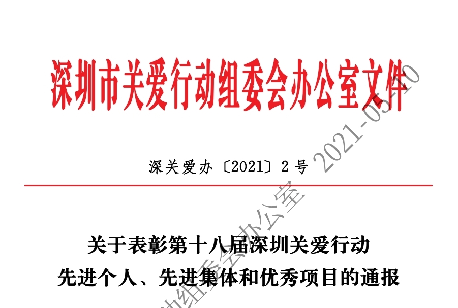 關于表彰2018深圳關愛行動先進個人、先進集體和優秀項目的通報